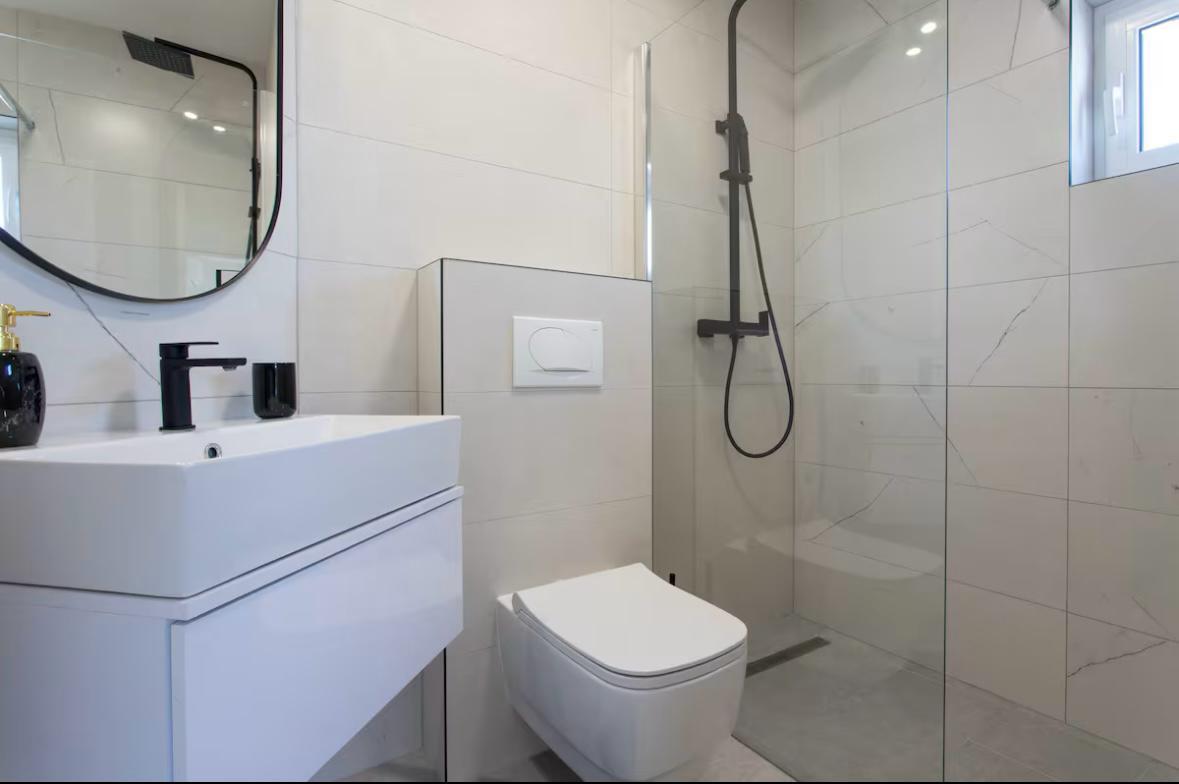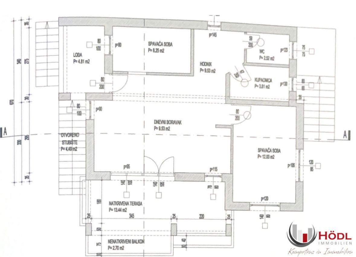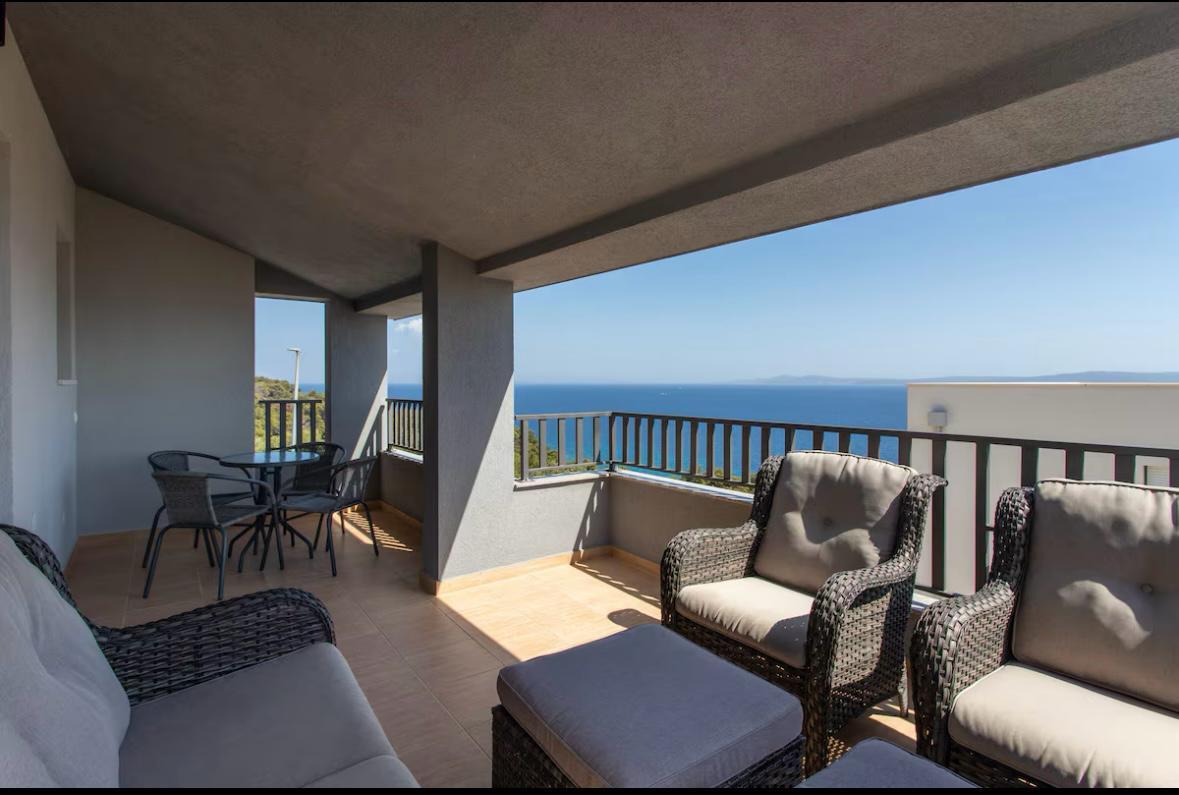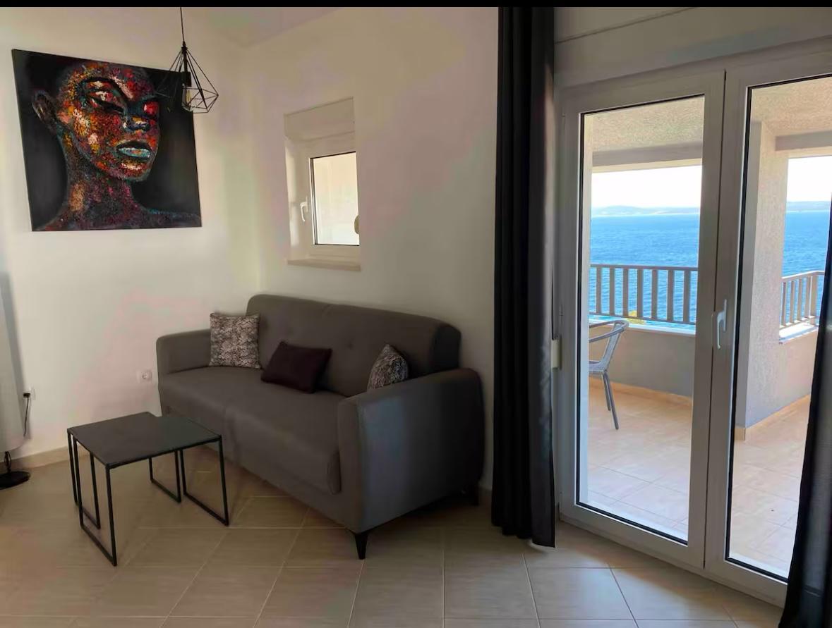 V prvním patře se nachází prostorný obývací pokoj, dvě ložnice, koupelna a další toaleta pro hosty. Z obývacího pokoje je vstup na terasu s krásným panoramatickým výhledem na moře.