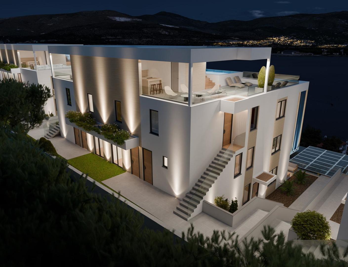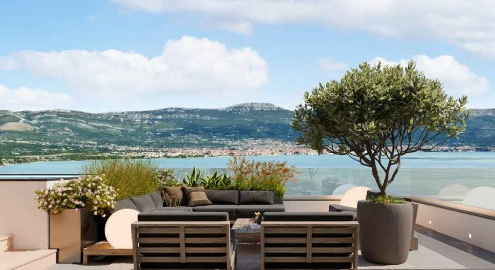 Nabízíme k prodeji luxusní penthouse s výhledem na moře v moderním apartmánovém komplexu s celkem 7 budovami na poloostrově Čiovo.